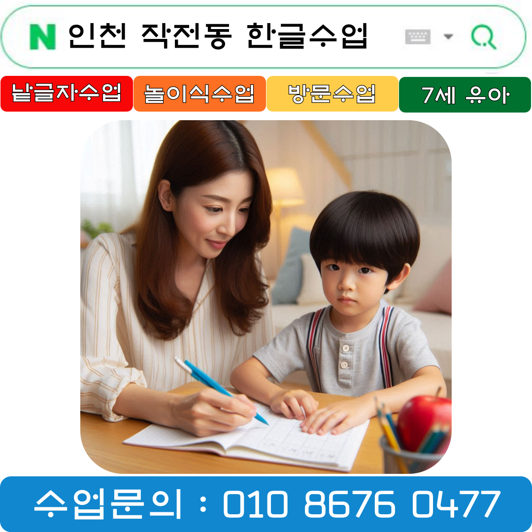 아이가 한글떼기에 어려움을 겪고 있다면 작전동 7세 낱글자 한글 수업을 통해 체계적이고 즐겁게 한글을 배울 수 있습니다.