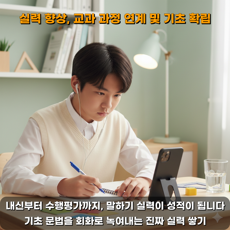 중학교에 올라가면 수행평가와 내신 시험에서 말하기 비중이 크게 늘어납니다. 화상 영어는 교과서 속 문법 개념을 실제 대화에 적용해보는 실전 훈련의 장이 됩니다. 전문 강사와의 1:1 수업을 통해 자신의 발음과 억양을 정교하게 다듬고, 질문에 논리적으로 답변하는 연습을 반복하면서 내신 성적과 회화 실력을 동시에 잡을 수 있습니다. 이는 학생들에게 영어가 단순히 시험 과목이 아닌, 소통의 도구임을 깨닫게 해주는 중요한 경험이 됩니다.